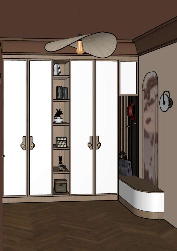 En supprimant la cloison entre le salon et la cuisine, nous avons créé un espace spacieux avec une circulation agréable. La lumière inonde l’appartement, devenu traversant, à longueur de la journée. Au lieu de condamner l’ancienne porte de la cuisine, nous avons opté pour une vitrine en verre avec des étagères ouvertes. En conséquence, le soleil éclaire le couloir et multiplie les jeux de lumière.